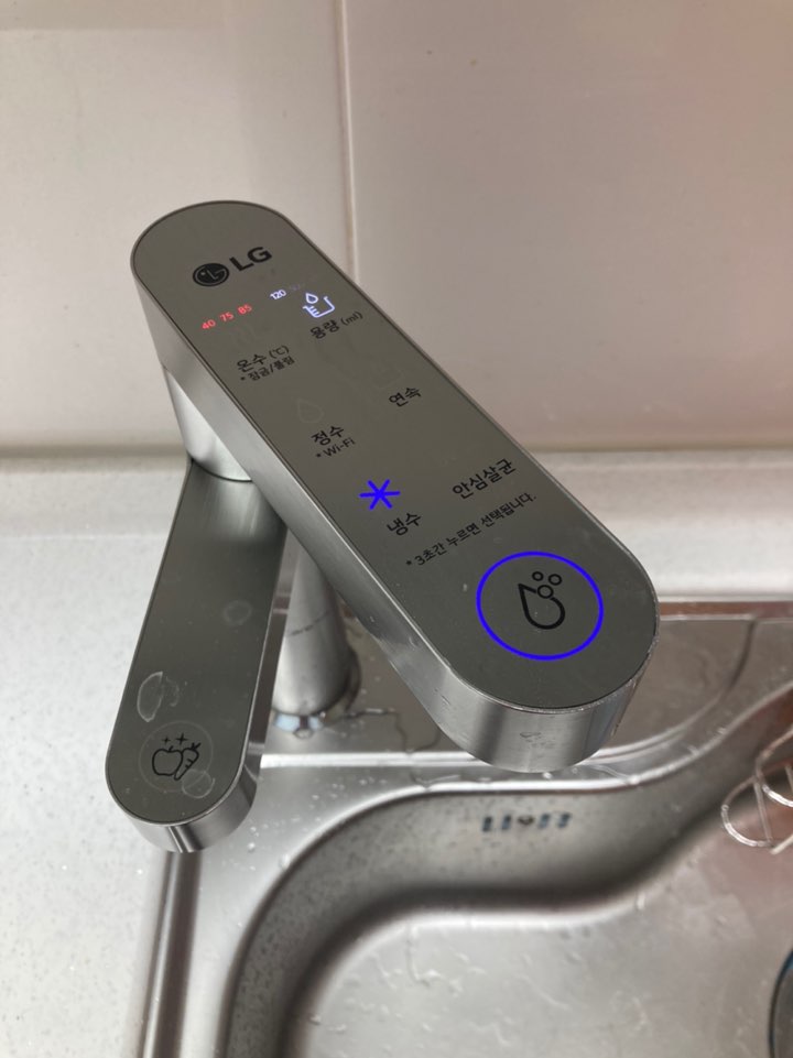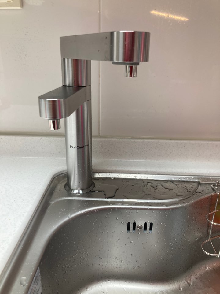만족스러워요! 물맛도 좋고, 매번 물을 구매해야 하는 귀찮음에서 벗어나니 아주 편합니다. 저는 온수, 냉수, 정수가 다 나오는 모델로 선택했는데 온수는 40,70,85도로 온도 조절도 할 수 있어서 좋아요. 듀얼 정수기 가장 큰 특징이 과일 세척수가 따로 있다는 것입니다. 예전에는 과일,야채 모두 물로만 대충 씻고 말았는데, 이제는 세척수로 좀 더 꼼꼼히 신경써서 세척해야겠어요. 설치 시간은 20분정도 걸렸고, 싱크대에 구멍을 뚫는거라서 소음은 굉장히 크게 5분 내외로 발생하게 되니 참고해주세요!